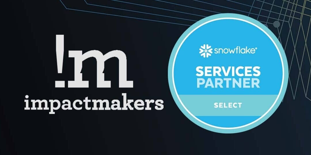 Impact Makers is excited to announce its recent Select Partner Certification with Snowflake. As a part of the Snowflake partner network, clients seeking to get the most out of an existing Snowflake Data Cloud or want to build new can rely on Impact Makers to provide expert advice and implementation services while also tapping a multitalented network of engineers in order to tackle the most complex challenges.